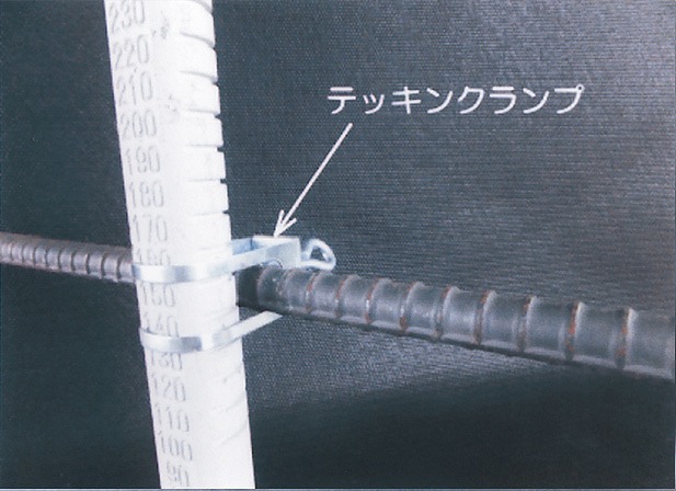 長さ目盛りが刻印された超高強度モルタル製のバーをコンクリート駆体にセットして、あるいは後埋めして打設することにより、コンクリート上面の天端出し、出来形(厚さ)の検測を簡単にできるようにしました。